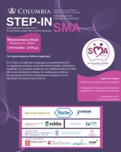 Το Σωματείο Ασθενών με Νωτιαία Μυϊκή Ατροφία Ελλάδος – SMA Hellas υλοποιεί για πρώτη φορά στη χώρα μας το εκπαιδευτικό σεμινάριο STEP‑IN SMA, υπό την αιγίδα του Υπουργείου Υγείας, της Α’ Πανεπιστημιακής Παιδιατρικής Κλινικής του Νοσοκομείου Παίδων «Η Αγία Σοφία» και της Ελληνικής Παιδονευρολογικής Εταιρείας. Το πρόγραμμα πραγματοποιείται σε συνεργασία με το Columbia University – Irving Medical Center και με τη θεσμική υποστήριξη της Ένωσης Σπάνιων Ασθενών Ελλάδας.