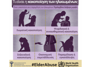 Ξύλο, σωματική και λεκτική βία, σεξουαλική κακοποίηση και οικονομική εκμετάλλευση υφίσταται ένα στα έξι ηλικιωμένα άτομα άνω των 60 ετών από μέλη της ίδιας τους της οικογένειας ή τους φροντιστές τους, μέσα στο σπίτι τους ή στο οίκο ευγηρίας όπου διαμένουν. Μάλιστα τον τελευταίο χρόνο με την πανδημία τα ποσοστά κακοποίησης αυξηθήκαν.
